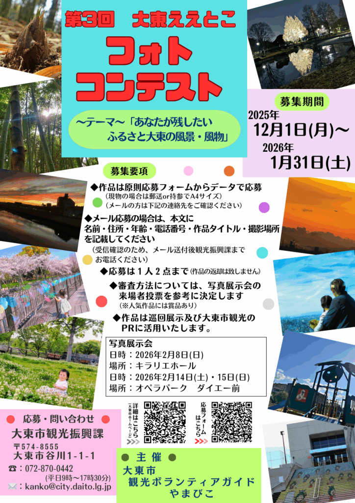 お問合せ:大東市 産業・文化部 観光振興課(やまびこ事務局)大東市谷川1丁目1番1号 ☎ 072-870-0442
