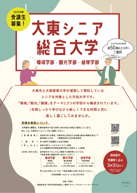 大東シニア総合大学受講生募集