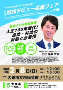 自分の将来のために、今!動ける時間を生活サポーターとして活動しませんか? 令和6年 5月21日(火)13時30分~15時 大東市役所 厚生棟A会議室 【申込・問い合せ先】生活サポートセンター ☎072- […]